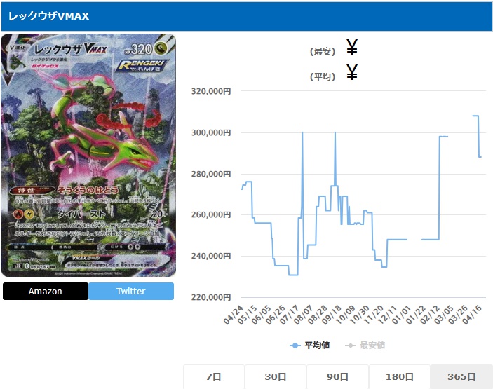 | 1位 | レックウザVMAX (SA) | HR | 083/067 | 348,000円 | 300,000円 |